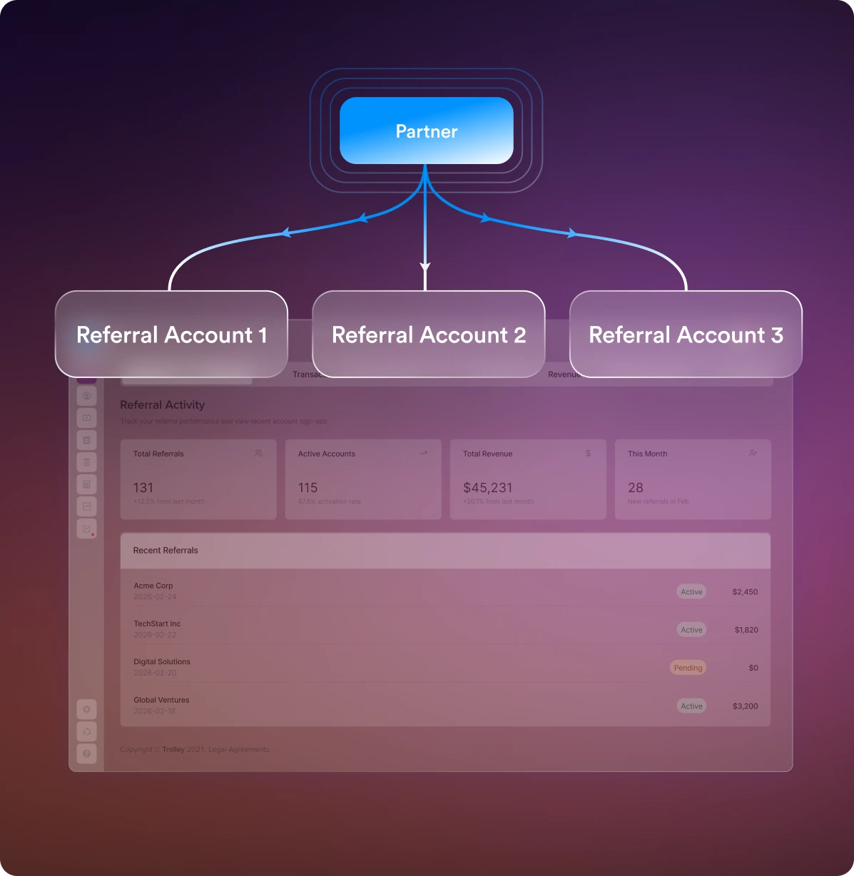 Track referral activity through a centralized partner dashboard